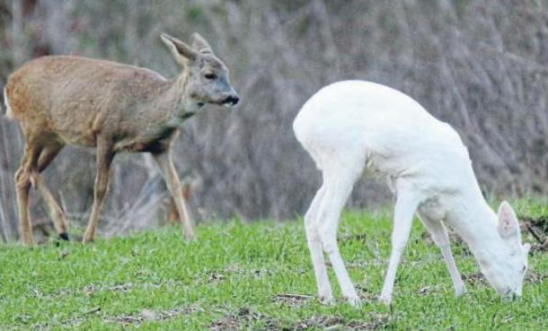 führten. In diesem Jahr trat der besonders seltene Fall auf, dass sowohl die Mutter als ihr Kitz weiß sind. Die meisten Albino-Rehe im Kreis waren und sind weiblich. Vor einer Reihe von Jahren gab es einmal einen Albino-Bock mit einem stattlichen Gehörn. Eines Tages war er verschwunden. Da sich die zuständigen Jäger einig sind, kein Albino-Reh zu bejagen, wurde der Luchs als Ursache des Verschwindens in Betracht gezogen. Seit 2016 gibt es erneut einen Albino-Rehbock in der Population (Fortpflanzungsgesellschaft). 2013 wurden die Reste einer Albino-Ricke im Wald gefunden. Zur Zeit leben in der Region, soweit bekannt ist, sechs Albino-Rehe. Zum Schutz der Rehe kann der genaue Lebensraum dieser seltenen Rehe nicht genannt werden.