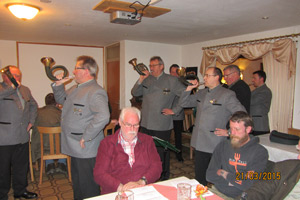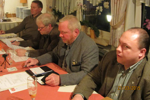Nachdem durch die Jagdhornbläsergruppe Allendorf der Abend mit musikalischem Hörnerklang eröffnet worden war führte der 1. Vorsitzende durch die Tagesordnung mit den verschiedensten Berichten unserer Obmänner des Hegerings bzw. der Jägervereinigung. Eine besondere Attraktion war die Übergabe der erworbenen Keilernadel 2014 an Dieter Seibel und an Wilfried Wolf ( nicht anwesend , wurde später übergeben ). Der Vorstand wurde von den Kassenprüfern für das abgelaufene Jahr entlastet und zum Abschluß erklangen nochmals die Jagdhörner auch speziell mit den Totsignalen unserer Leitwildarten für all diejenigen Jägerrinnen und Jäger, welche Waidmannsheil hatten, aber ohne die entsprechenden waidmännischen Signale des Verblasens am gestreckten Wild in Wild und Flur.