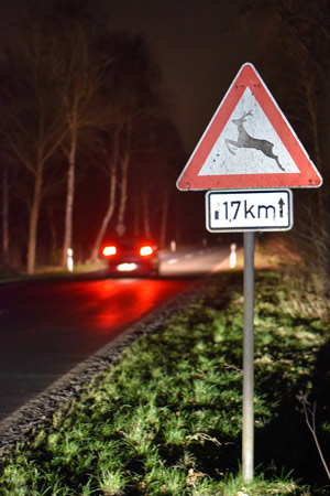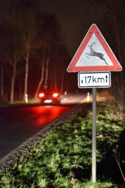 Um Zusammenstöße zu vermeiden, rät der DJV, Wildwechsel-Warnschilder zu beachten und besonders entlang von Wald-Feld-Rändern sowie im Wald aufmerksam und mit angepasster Geschwindigkeit zu fahren. Was viele nicht wissen: selbst ein 20 Kilogramm schweres Reh besitzt bei einer Kollision mit Tempo 60 ein Aufschlaggewicht von 800 Kilogramm.