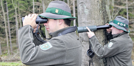 Foto: Dennis Schmidt: Stefan Umbach (links) und sein wenige Kilometer entfernt angestellter Jägerkollege Bernd Vogt genießen die Aufgaben, die ihnen ihr Job täglich stellt. „Jäger sein ist mehr als Schießen", wollen sie das Bild ihres Berufes geraderücken.