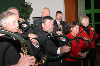 Die Bläsergruppe umrahmte mit Jagdweisen die Jahreshauptversammlung der Jägervereinigung Frankenberg. Links im Bild Bläserobmann Bernd Hömberg.
