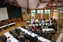 Blick in die Versammlung auf der Geweihschau am Samstag in der Ederberglandhalle. Foto: Marco Vöbel
