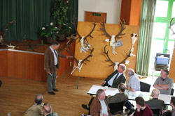 Der 2. Vorsitzende der Jägervereinigung Frankenberg, Matthias Eckel, eröffnete die Geweihschau mit der Begrüßung der Anwesenden und besonderen Gäste. Der 1. Vorsitzende, Heinrich Engelhard, gab als Kreisjagdberater für den Kreisteil Frankenberg einen ausführlichen Bericht über die Situation des Wildes und die Streckenentwicklung im Kreis. (ein ausführlicher Bericht folgt.) Grußworte überbrachten Helmut Möller als Sachbearbeiter in der unteren Jagdbehörde in Korbach für den Kreis und für den Landesjagdverband Hessen (LJV) Vorstandsmitglied Werner Wittich. (zqa)