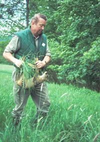 Kreisjagdberater Engelhard bittet vor der anstehenden Heuernte Kitze in den zu mähenden Wiesen vor dem Mähwerken zu retten, so wie es auf dem Foto Berufsjäger Willi Lotze tut. Foto: Gerhard Kalden
