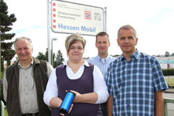 Vorstellung der blauen Wildwarnreflektoren mit (von links) Kreisjagdberater Heinrich Engelhard, Technische Angestellte bei Hessen Mobil Bianca Clemens, Stephan Brühne Hessen Mobil Dezernent Nordhessen und Frank Meiser als Stellvertreter Fachdienst Verkehr. Foto: Gerhard Kalden