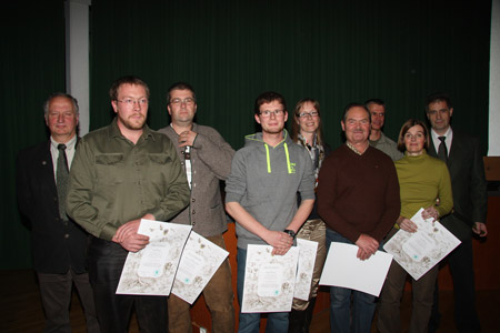 Den jagdmusikalischen Rahmen der Veranstaltung gestaltete die Bläsergruppe mit Jagd- und Parforcehörnern. In seinem Tätigkeitsbericht ging der 1. Vorsitzende unter anderem auf die Herbstversammlung 2012, eine Vorstandssitzung, die Geweihschau, das Jägerseniorentreffen auf dem Wilhelm-Geise-Schießstand, die Jungjägerausbildung mit dem landesweit besten Prüfungsergebnis, auf die jährliche Hundeausbildung zu Jagd-gebrauchshunden und nicht zuletzt auf den jährlichen Naturschutz-Arbeitseinsatz der Jäger ein. "Es war eine vielfältige Tätigkeit und wir sind gut aufgestellt", fasste Engelhard seinen Bericht zusammen.