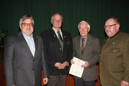 Treuenadeln überreichten Heinrich Engelhard und Hans Ammenwerth als Schriftführer für 25-jährige Mitgliedschaft in der Jägervereinigung an Eberhard Engelbach und Manfred Michalik. In Abwesenheit wurden ebenfalls für 25 Jahre Mitgliedschaft geehrt: Karl-Heinz Hecker, Klaus-Peter Müller, Harald Pleger und Thomas Zeller, für 40 Jahre Mitgliedschaft: August Huhn, Karl Krümmelbein und Hubertus Wachsmuth und für 50 Jahre Mitgliedschaft Heinz Stork.
